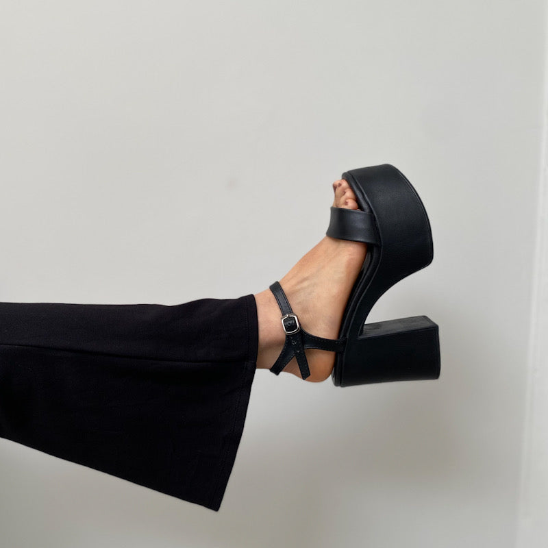Color: Negro. Material: Eco cuero. Plataforma: 10 cm (atras) 5cm adelante