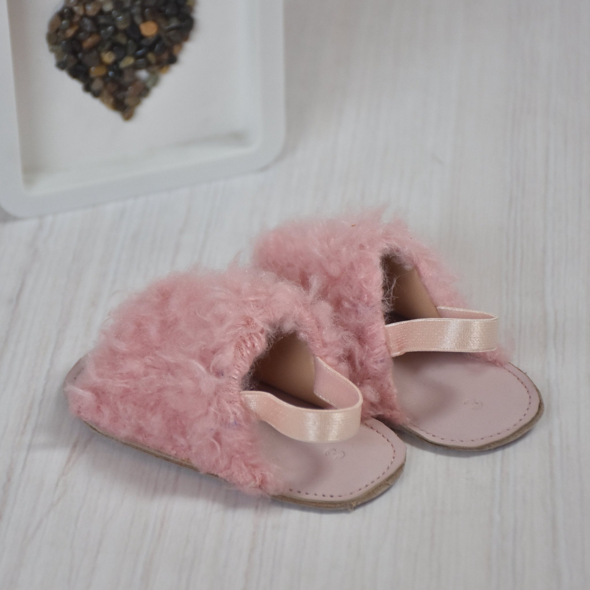 - Material: peluche y cuero